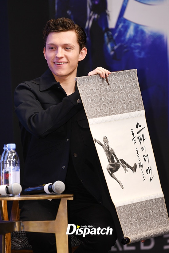 而在韓國的宣傳會還有另一個小插曲,這次則發生在「蜘蛛人」湯姆荷蘭身上,在電影發布會上,主辦單位為主演們獻上繪有角色圖像的山水畫,然而...令人尷尬的是,湯姆拿到畫上 - 蜘蛛人造型居然是「驚奇蜘蛛人」!也就是由 安德魯加菲爾德飾演的版本,我們可以從媒體釋出的照片可以看到,湯姆的表情也似乎有點尷尬,也讓許多粉絲批評主辦單位實在是不夠用心,居然會犯下這樣的錯誤。
